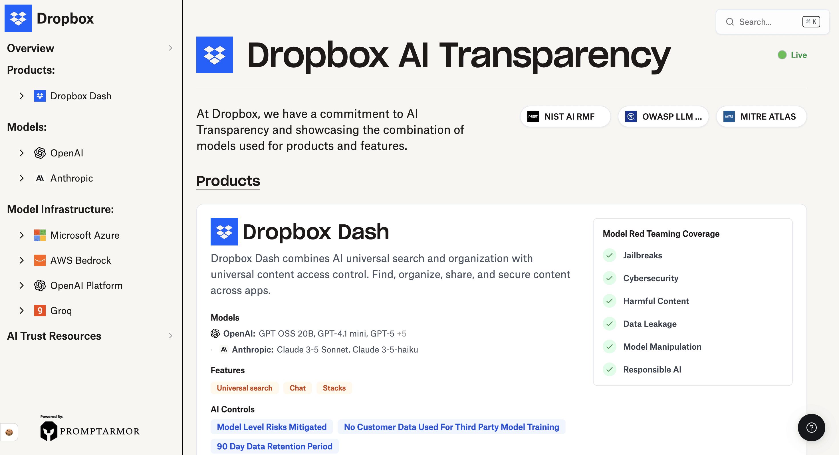 AI leaders across industries are using PromptArmor’s AI Transparency page and AI model cards to unblock enterprise security review, reduce back-and-forth with procurement, and prove strong AI governance.